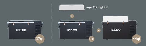 By adding the extra accessories (7qt lid, 11qt collar), VL37qt can be a 44qt/48qt or 55qt portable fridge.