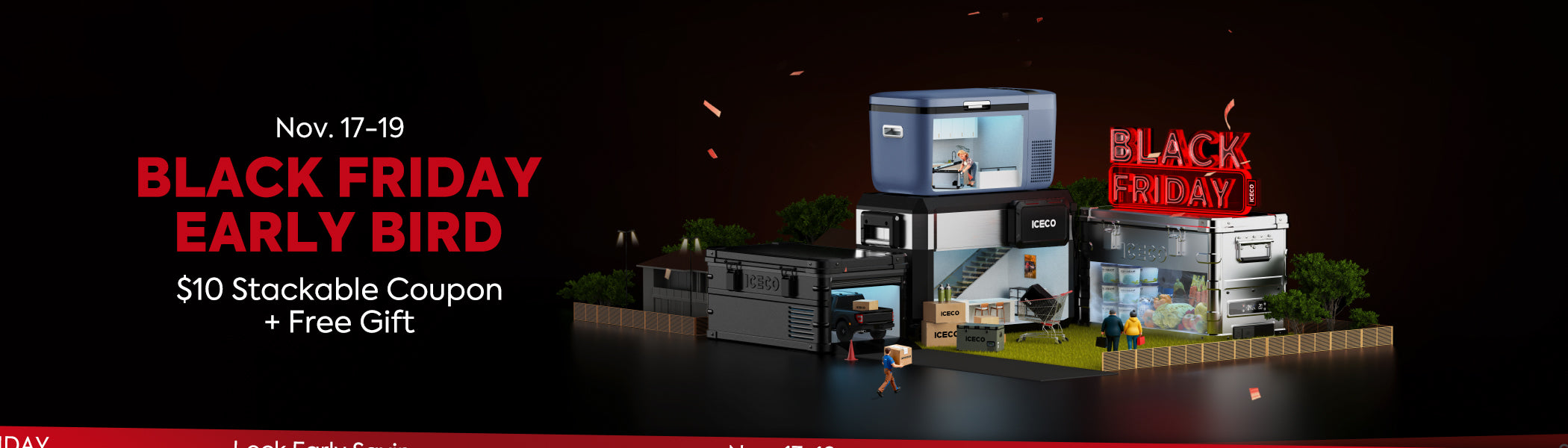 ICECO APL55-Black  58Qt dual zone fridge freezer, portable fridge for camping and overland adventures, ideal for long-term RV use-www.icecofreezer.com