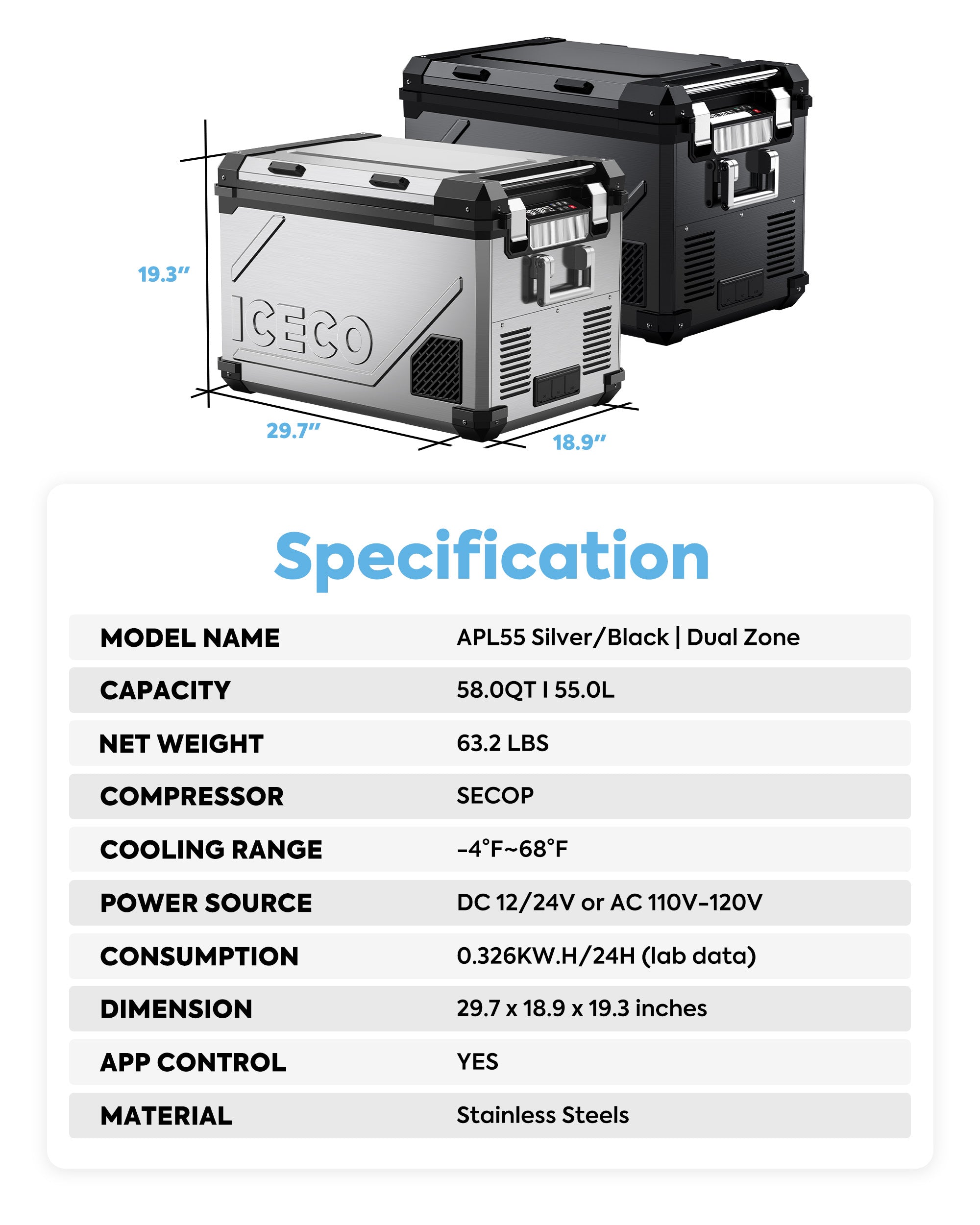 ICECO offers 5-year warranty on Secop compressor and 1 year for other parts.