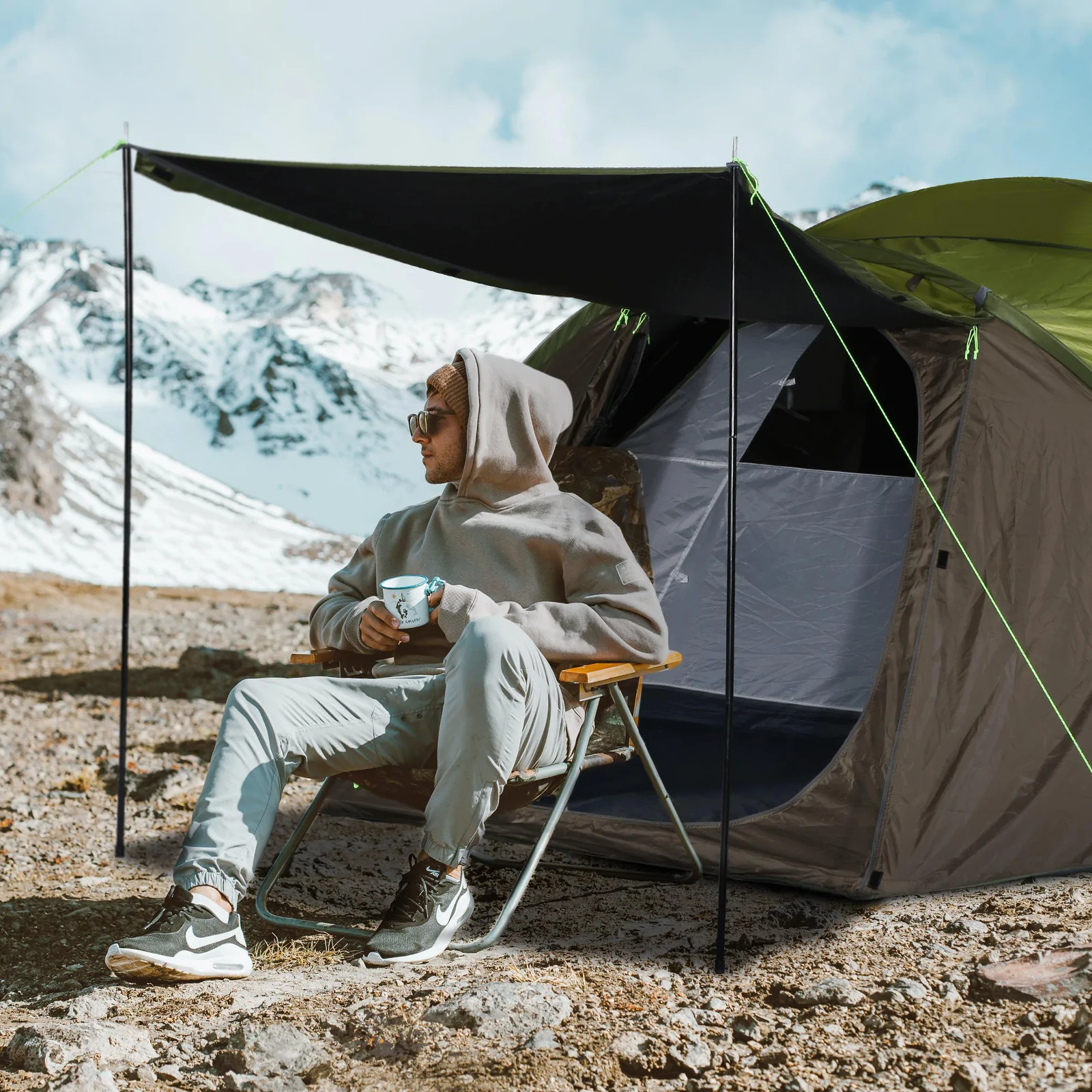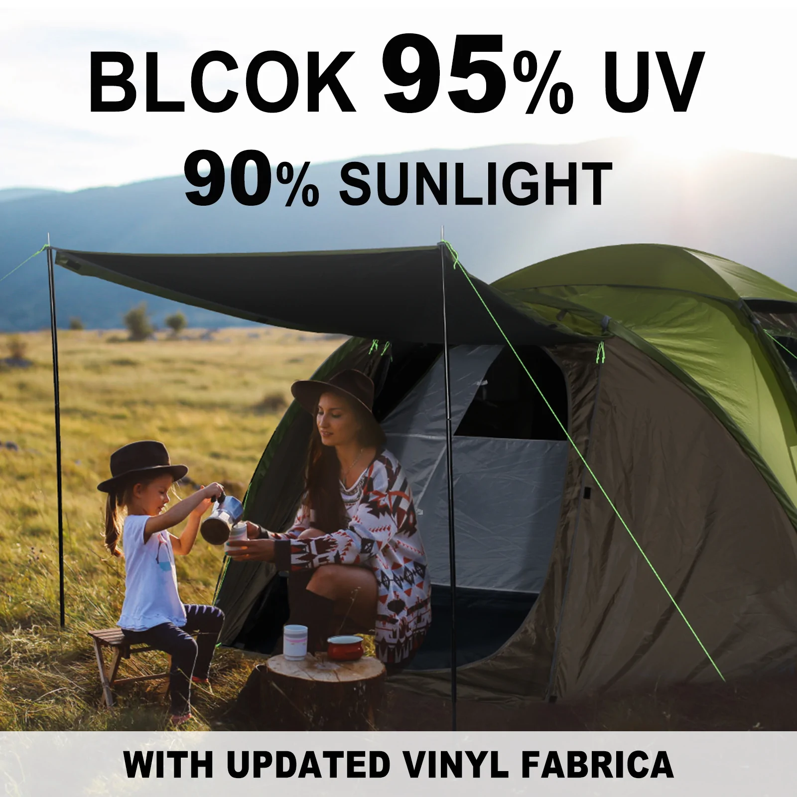 Comparing with usual blue tent, ICECO green camping tent has upgraded a vinyl fabric, which is made of 190D Oxford cloth + uv protection coating, uv protection rating is UPF 50+(Block 95% UV).