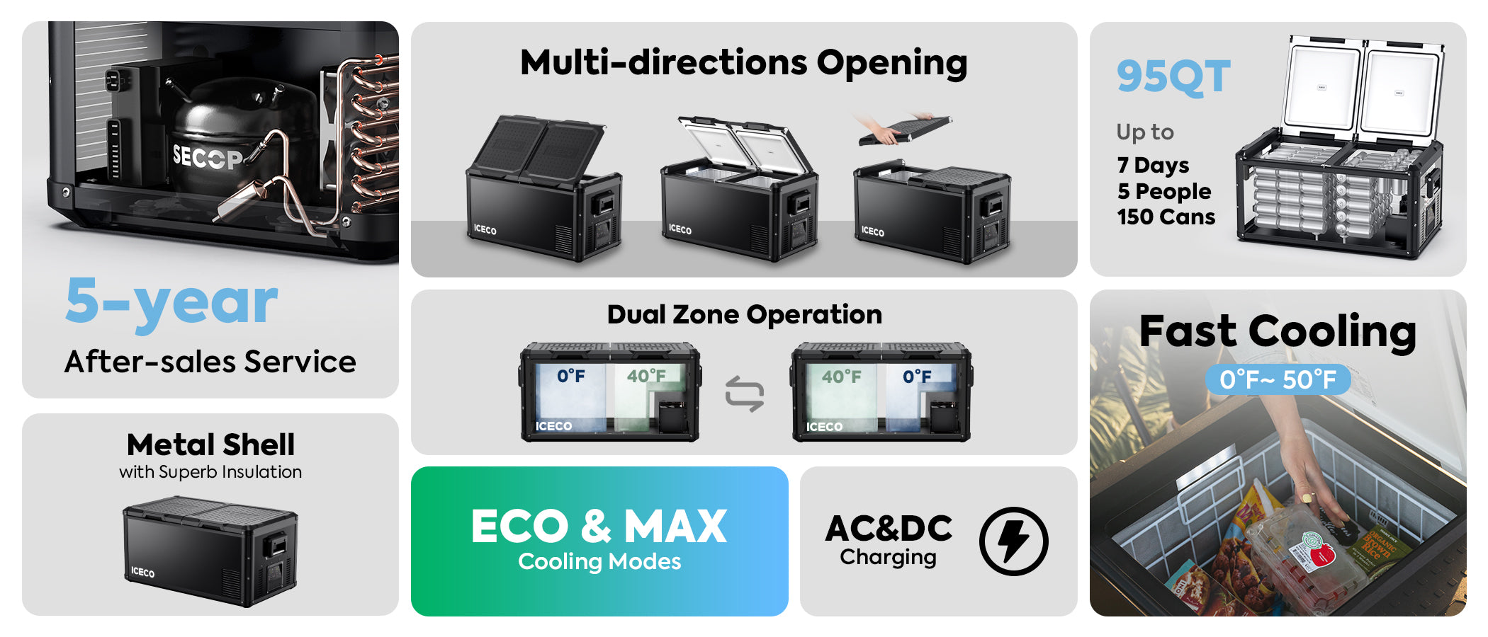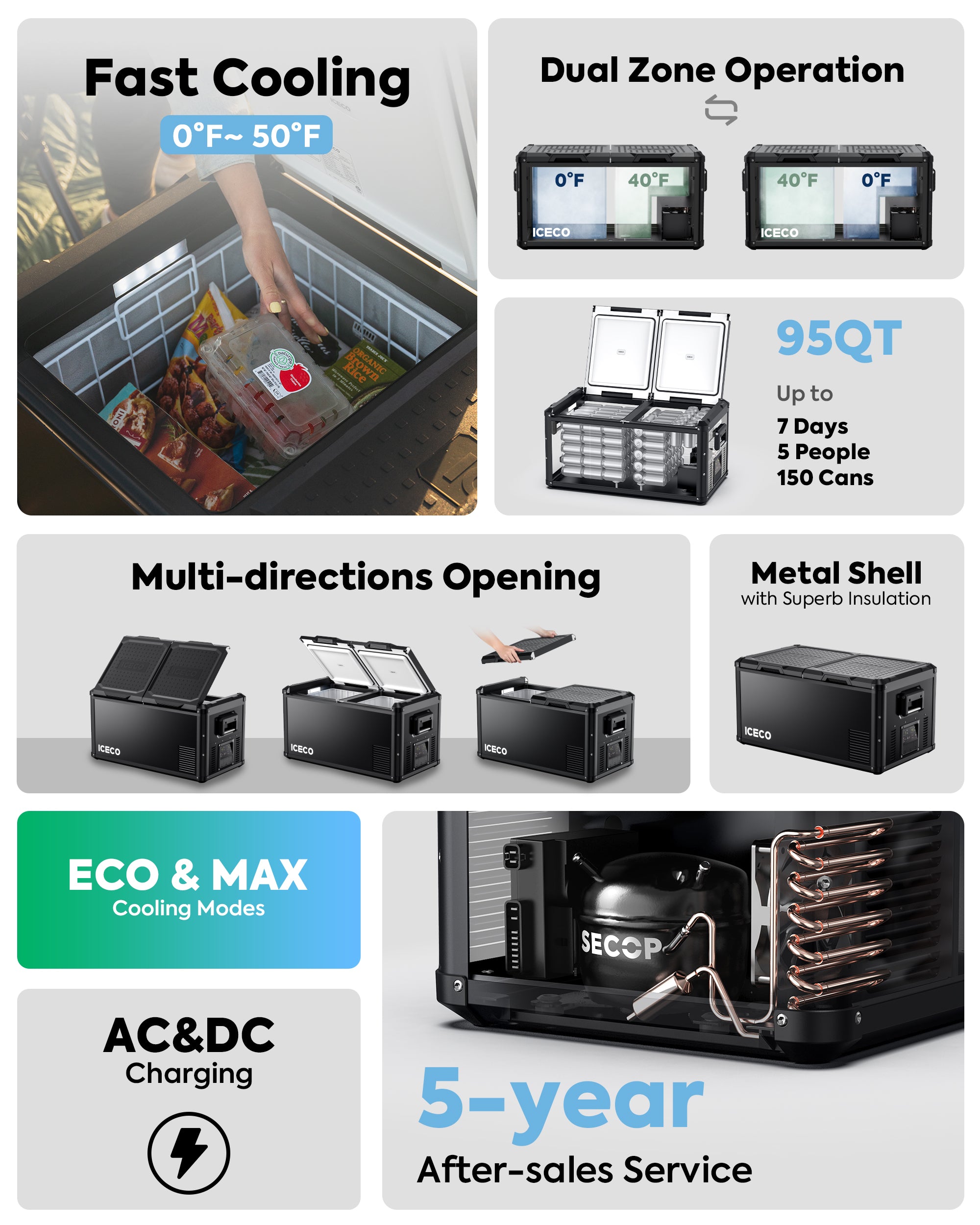 Thanks for your question. ICECO provides 5 years warranty on Secop compressor and 1-year warranty on other parts accessories.